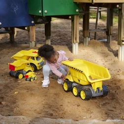 Prekucnik BIG Power Worker Mega je zasnovan za majhne roke in velike ideje. Živo rumena zasnova z modernimi potiski izgleda kot pravo gradbeno vozilo, medtem ko keson s prostornino 13 litrov z lahkoto prevaža pesek, vodo in igrače. Z dolžino 65 cm je za 30 % daljši kot manjši model iz serije BIG Power Worker Maxi in ponuja še več prostora za igro.