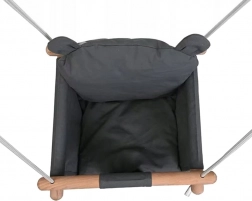 Gugalnica ima močna kovinska obešala, ki omogočajo enostavno obešanje in nastavljanje dolžine vrvi s kovinskimi sponkami. Poleg tega jo lahko pospravite v črno torbico z zatezno vrvico.