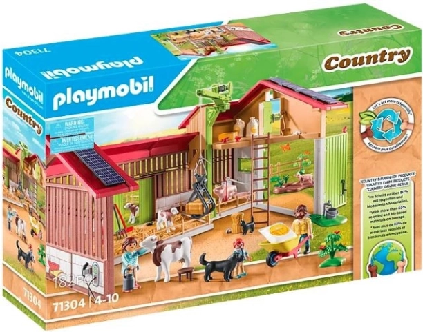 Velika kmetija Playmobil Country prinaša otrokom pristno doživetje podeželja. Zahvaljujoč bogati opremi, funkcionalnim elementom in raznoliki živalski družbi si lahko mali kmetovalci izmišljajo lastne zgodbe ter se učijo o odgovornem ravnanju z naravnimi viri.