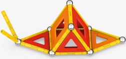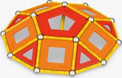 Odkrijte moč geometrije z Geomag Classic Plošče. Ta magnetni gradbeni set vsebuje 28 rumenih magnetnih paličic, 20 jeklenih kroglic, 16 trikotnih polnil, 2 rdeči polnili v obliki peterokotnika in 12 polnil v obliki kvadrata. Priložena je tudi priročna plastična škatlica za kroglice in paličice.
