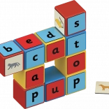45 dvostranskih sponk s črkami in ilustracijami podpira prepoznavanje črk, sestavljanje prvih besed in razvoj besedišča.