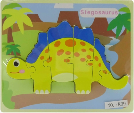Lesena vstavljanka z motivom dinozavra je idealna igrača za otroke od 3. leta, ki spodbuja razvoj fine motorike in logičnega razmišljanja. Zaradi svojih kompaktnih mer je primerna za majhne otroške roke ter ponuja zabaven način spoznavanja oblik in barv.