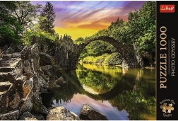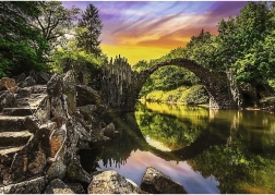 Potopite se v atmosfero sončnega zahoda nad legendarnim Rakotzbrücke. Ta podrobna sestavljanka iz kolekcije Photo Odyssey prinaša oster tisk, žive barve in realistično upodobitev, ki naredi sestavljanje vizualno privlačno doživetje. Dimenzija sestavljene slike je približno 68,3 × 48 cm – idealno za uokvirjanje.