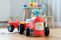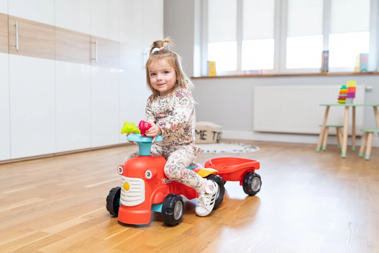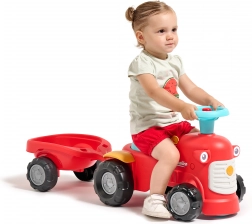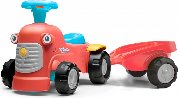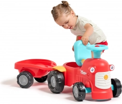 Zabaven in stabilen poganjalec v slogu traktorja s prikolico bo razveselil male voznike od 12 mesecev dalje. Ponuja varno vožnjo, vzdržljiva plastična kolesa, vrtljivo sprednjo premo za enostavno upravljanje ter hupo za še več zabave. Praktičen shranjevalni prostor pod sedežem in odstranljiva prikolica razvijata domišljijo in motoriko otrok.