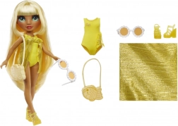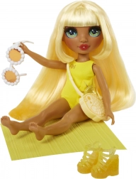 Lutka je pripravljena za dan poln zabave s svojim stilnim kostumom, ki vključuje usklajene sandale in sončna očala. Popolna za plažo, ob bazenu ali v kopalni kadi - kjerkoli vam domišljija dovoli.