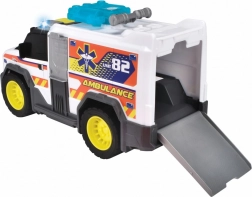 Reševalno vozilo dolžine 30 cm znamke Dickie Toys je opremljeno z več odličnimi funkcijami, ki zagotavljajo nepozabne trenutke: