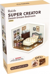 Sestavite svojo lastno prijetno miniaturno spalnico s čarobnim vintage pridihom. Sestavljanka Sweet Dream Bedroom znamke ROBOTIME/ROLIFE prinaša podroben pohištveni komplet, dodatke in LED osvetlitev za popolno atmosfero. Sestavljanje je zabavno, razvija kreativnost in fino motoriko, končni model pa čudovito polepša vaš interier.