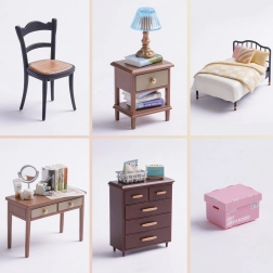 Odkrijte čar miniatur s spalnico Sweet Dream, kjer naravni leseni toni in kremno rumeni detajli ustvarjajo toplo vzdušje. Set vključuje posteljo, nočno omarico z lučko, pisalno mizo z vrtljivim ogledalom, komodo in drobne dekoracije. Zahvaljujoč LED osvetlitvi izstopajo vsi detajli, model pa postane izrazita dekoracija.