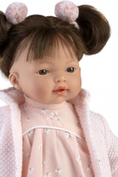 Llorens Vera je skrbno zasnovana otroška punčka za nežno igro in razvoj domišljije. Ima mehko tekstilno telo, idealno za crkljanje, ter mehčan vinil na glavi in okončinah z nežnimi detajli. Lasje po vsej glavi kar vabijo k česanju in ustvarjanju pričesk. Ko odstranite dudo, začne govoriti (»mama«, »papa«) in realistično jokati; magnetna duda zvoke takoj utiša.