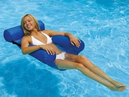 Napihljiv vodni stol združuje udobje ležalnika in stabilnost plovca. Dva ločena valja za hrbet in stegna povezuje prožna tekstilna mreža, ki omogoča, da se telo nežno hladi v vodi in hkrati ohranja udoben polležeč položaj. Odlično za odrasle in najstnike za počitek, sončenje in zabavo v bazenu.
