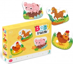 Odkrijte prve korake v sestavljanju za najmlajše: baby puzzle s tremi obrisnimi slikami živalic s kmetije v težavnostih 2, 3 in 4 koščki. Zahvaljujoč preprostim oblikam in prisrčnim ilustracijam podpirajo otroke pri prvih korakih sestavljanja, razvijajo domišljijo, logično mišljenje, fino motoriko in koordinacijo oko–roka.