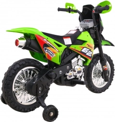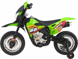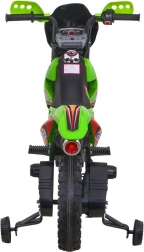Otroški električni motokros motor na akumulator – zelen, s pomožnimi koleščki in LED lučmi