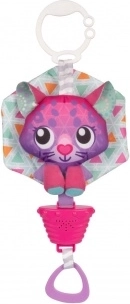 Igrajoča mačka s svojim nasmehom in melodijami hitro osvoji srce mamice in dojenčka. Vesela prijateljica privablja otroško pozornost in vadi koncentracijo. Ko potegnete spodnji del, se predvaja vesela melodija. Različne strukture materialov in barve stimulirajo otrokov dotik in vid. Igračka je opremljena s posebnim klipom, s katerim je možno igračko obesiti na posteljico, voziček ali avtosedež. Igrajoča mačka je igračka iz kolekcije Playgro On the Go. Vsaka igračka te kolekcije je zasnovana tako, da razvija čute skozi aktivno igro. Majhni otroci z veseljem opazujejo žive barve in vzorce, osredotočeno poslušajo nove zvoke, ki jih igračke oddajajo: piskanje, rožljanje, šumenje ali trkanje. Kasneje začnejo odkrivati in zaznavati svet s svojimi drugimi čuti, učijo se koordinirati roke in noge ter razvijati grobo in fino motoriko. Dimenzije paketa cca 16 x 32 x 6 cm. Starost 0+