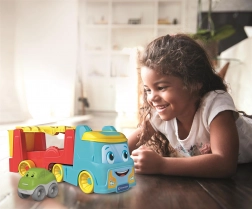 Ta barvit avtovlak CLEMENTONI bo razveselil vse male voznike. V načinu tovornjaka otroci prevažajo avtomobilček in odkrivajo svet resničnih vozil, v načinu proge pa se voz spušča po tiru, se prevrača in dela veselé prevale – veselje do igre in učenja v enem.