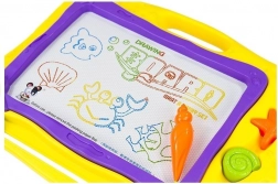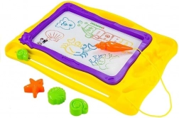 Barvno ozadje, razdeljeno na 8 delov, doda vsakemu izdelku živahnost in spodbuja otroško domišljijo. Morski dizajn s školjkami in morskimi zvezdami bo razveselil male ljubitelje oceana. Kakovostna izdelava zagotavlja dolgo življenjsko dobo in varno uporabo – rišite samo s priloženim magnetnim peresom.