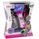 Zaradi prisotnosti glasbe v življenju otroka je zagotovljen njegov pravilen razvoj. Otroški karaoke mikrofon v rožnato-vijolični barvi, okrašen z belimi detajli, je zasnovan za najmlajše. Mikrofon ima dekorativni trak in spodnjo kroglico, ki svetita med nastopom, kar še dodatno obogati zabavo. Večfunkcijska igrača podpira razvoj sluha, glasbene in ritmične sposobnosti, pa tudi domišljijo, koncentracijo in koordinacijo gibov otrok.