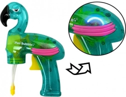 Ta pištola za mehurčke združuje unikaten design flaminga s premišljeno konstrukcijo, ki omogoča hitro ustvarjanje mehurčkov. Je enostavno vodljiva, celo za manjše otroke, zahvaljujoč slikovnemu navodilu na zadnji strani embalaže.