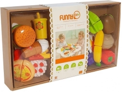 Set sadja in zelenjave za rezanje je odličen dodatek k otroškim igram na trgovino ali restavracijo. Set vsebuje: