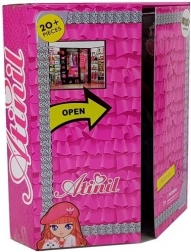 Odprtljiva škatla z grafiko garderobe pregledno shrani punčko in vse dodatke. Več kot 20 kosov v setu.