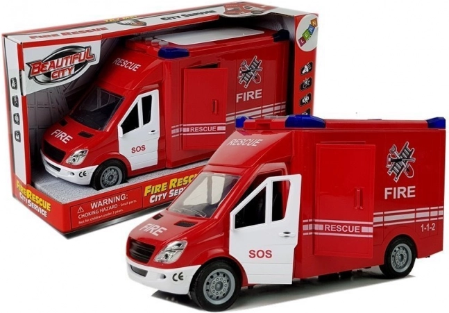 Realistični gasilski avto za male reševalce navduši z dovršeno izdelavo, z zadnjimi in stranskimi odpiralnimi vrati, delujočimi lučmi in zvoki sirene ter preprostim gibanjem zahvaljujoč vztrajniku. Idealna igrača za otroke od 3 let, izdelana iz trpežne plastike in dobavljena v darilni embalaži.
