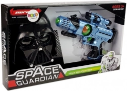 V tem čudovitem setu boste našli futuristično modro pištolo in črno masko, ki sveti z modrimi in rdečimi lučmi. Otroci bodo uživali v realistični igri na vesoljske bojevnike. Vsak element je izdelan iz kakovostne plastike, ki je varna in vzdržljiva.