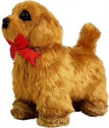 Izpolnite otroške sanje o lastnem ljubljenčku. Interaktivni kužek z mehkim rjavim kožuščkom reagira na božanje – laja, maha z repom in premika glavico. Ob pritisku na trebušček začne hoditi naprej, ponovno laja in predvaja prijetno melodijo. Zaradi realističnega videza s temno rjavimi očmi in rdečo mašnico si ga bodo otroci hitro vzljubili.