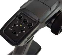 Ergonomski oddajnik omogoča gladko regulacijo plina, nastavitev kota zavijanja in omejitve hitrosti. Brez motenj, idealno za skupne dirke.