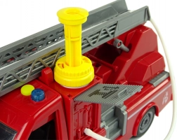Gasilni avto je opremljen s sistemom, ki omogoča škropljenje vode iz cevi, s čimer otrokom prinaša realistično igro.