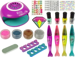 .Rešitev za vse mamice, katerih hčere izbirajo kozmetiko in imajo še posebej rade lakiranje nohtov – lastni komplet za manikiro. Popestril bo njene igre in ji omogočil, da se igra kozmetičarko ali manikerko. Morda jo bo ta poklic navdušil? Dve lastnosti, ki bosta pri vašem otroku gotovo razvijali ustvarjalnost in domišljijo.