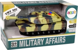 Ta podrobno izdelan tank s kamuflažnim vzorcem otrokom prinaša avtentično izkušnjo vojaške tehnike. Vrtljiva cev, gumijaste gosenice in osvetljena cev ustvarjajo vtis pravega vozila. Zaradi kompaktnih mer lepo sede v roko in je pripravljen na akcijsko igro doma ali na poti.