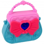 Stilska rožnato-turkizna torbica z izrazito mašno in okrasnimi detajli je idealna za shranjevanje vseh drobnih zakladov.