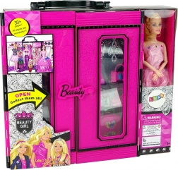 Vstopite v svet mode s to garderobo, ki je namenjena deklicam, ki rade igrajo z lutkami, jih preoblačijo in stilizirajo. Garderoba je oblikovana v svetlo roza barvi z dvojnimi vrati s steklenimi paneli, ki omogočajo vpogled noter.
