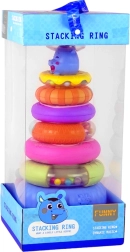 Zlaganjem barvnih obročkov otroci vadijo svoje motorične spretnosti in koordinacijo roke in oči.