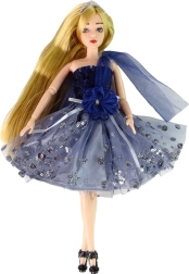 Odkrijte elegantni čar punčke Emily – njeni dolgi svetlolasi lasje, bleščeča modra obleka s cvetličnimi detajli in modni čevlji jo naredijo za čudovito družabnico pri vsakodnevni igri. Set dopolnjuje prisrčen kužek, črna torbica s srebrno pentljo in dekorativna cvetova za izvirne modne prizore.