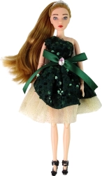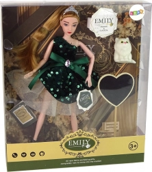 Vdihnite otroški igri čarobnost s punčko Emily – elegantno punčko z dolgimi blond lasmi, zlato tijaro in obleko z zelenimi bleščicami. Premične okončine omogočajo naravno poziranje in enostavno uprizarjanje modnih revij ter zgodb.