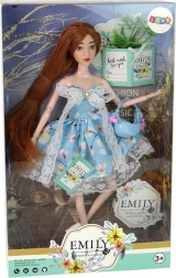 Punčka Emily prinaša v igro svežo pomladno atmosfero. Dolgi rdeči lasje so popolni za učenje pletenja kit in kreativne pričeske, medtem ko zelene oči punčki dajejo edinstven izraz. Modra obleka z nežnim cvetličnim potiskom, srčkano čipko in prikupno pentljo poudari njen slog. Bele superge dodajo ležeren pridih vsakemu pustolovščinskemu dnevu.