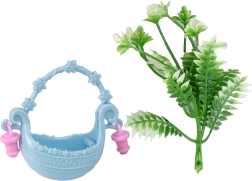 Elegantna modra torbica in cvetje dodata vsaki igri pridih čarobnosti in spodbujata pripovedovanje zgodb.