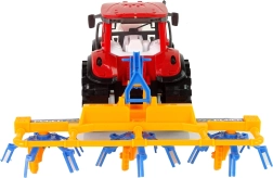 Ta natančno izdelan rdeč traktor z zadaj priklopljenim grabljalnikom spremeni vsako otroško igro v kmečko avanturo. Zahvaljujoč frikcijskemu pogonu se traktor zlahka zapelje naprej in nazaj, medtem ko se premični deli grabljalnika med vožnjo vrtijo in posnemajo pravo delo na polju.