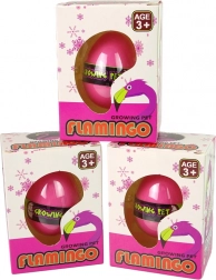Rastoče jajce flamingo je fascinantna in interaktivna igrača za male raziskovalce. Po potopitvi v vodo s temperaturo nižjo od 35 stopinj Celzija se njegova lupina po 24 do 48 urah začne nežno pokati in razkrije, kaj se skriva v notranjosti. Ta vznemirljiv trenutek pokaže vsak nov del vaše skrivnostne igrače.