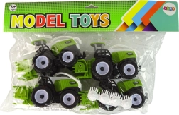 Set štirih otroških traktorjev v realistični zeleni barvi je ustvarjen za male ljubitelje kmetijskih strojev. Realističen dizajn in funkcionalni detajli otrokom omogočajo ustvarjalno igro. Izdelane iz trpežne plastike te igrače zagotavljajo dolgotrajno zabavo. Vsak traktor v velikosti 16 cm x 11 cm x 9 cm je enostaven za upravljanje in ponuja možnost kombiniranja s posnetki kmetijske opreme.