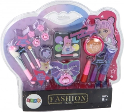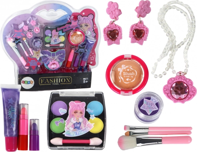 Poleg kozmetike komplet vključuje tudi stilski nakit, ki vsaki stilizaciji doda eleganco in edinstven značaj. Ogrlica in uhančki v rožnati barvi odlično dopolnijo vsako kreacijo ter ji dodajo lesk in dekliški čar.