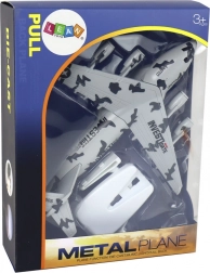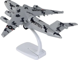 Sivo vojaško letalo s kamuflažnim dizajnom deluje verodostojno in efektno tako na polici kot pri igri. Zahvaljujoč štirim motorjem, napisu UNITED in kakovostni izdelavi iz kovine in plastike dobite vzdržljiv model, ki odlično izgleda in hkrati zabava.
