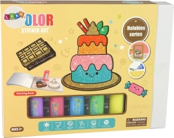 Odkrijte ustvarjalni svet z našim neprekosljivim setom, ki vključuje raznolike tematske nalepke, ki spominjajo na okusne torte, makrone in čokolade. Otroci lahko barvajo in ustvarjajo po svoji lastni domišljiji. Podrobnosti in barve so na vas, s priloženimi 8 barvami in bleščicami dodajte dekoracijam na steklu čudovit sijaj.