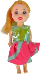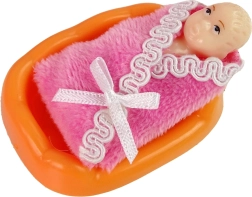 Del seta je tudi majhna lutka – deklica z blond lasmi in modrimi očmi. Celoten set je dopolnjen z bogatim dodatkom, kot so glavniček, lonček, dudo, račkica za kopanje, steklenička, plišasti medvedek in visok stolček za hranjenje. Idealno darilo za otroško kreativnost in razvoj negovalnih sposobnosti.