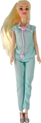 Eleganten zdravniški outfit in dolgi, svetli lasje punčki dodajo avtentičen videz, ki bo navdušil otroke.