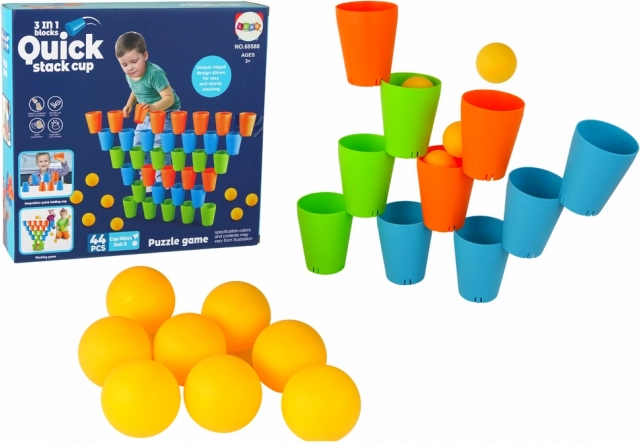 Komplet Zložljivi lončki 3 v 1 je idealen za razvoj ročnih spretnosti in logičnega razmišljanja otrok. Lončki imajo posebne zožitve za enostavno povezovanje in ustvarjanje zgradb, hkrati pa spodbujajo ustvarjalnost in ciljno naravnanost.