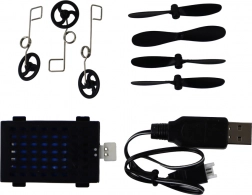 Vgrajena barvna luč poveča vidnost v somraku. V paketu najdete USB polnilnik, rezervne propelerje in celoten komplet dodatne opreme.