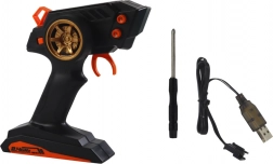 Robustna karoserija v turkizno-črni kombinaciji in zlata kolesa dodajajo dirkaški značaj, medtem ko 7,4V akumulator nudi dovolj energije za dinamično vožnjo. Model je primeren za otroke od 6 let dalje, izpolnjuje standarda CE in EN71.