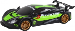 Uživajte v adrenalinu s tem RC športnim avtom v merilu 1:10 v zeleno‑črnem dizajnu z zlatimi platišči. Ponuja hitrost do približno 25 km/h, gladko upravljanje na 2,4 GHz, svetlobne učinke in napajanje z 7,4 V akumulatorjem. Odličen za zabavo na prostem in doma za otroke od 6 let naprej.