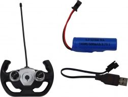 Upravljanje je omogočeno z daljincem v obliki volana. Priložena je tudi polnilna baterija in USB kabel za maksimalno udobje.